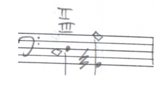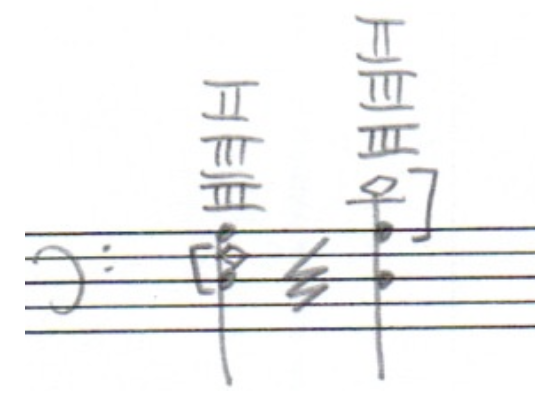 A multiphonic is when you cause multiple harmonics to sound simultaneously. For example, in the next audio clip, on the G-string I play the 5th partial, which is a major third above the open string and trill it with the 3rd partial, a perfect 5th above the string.